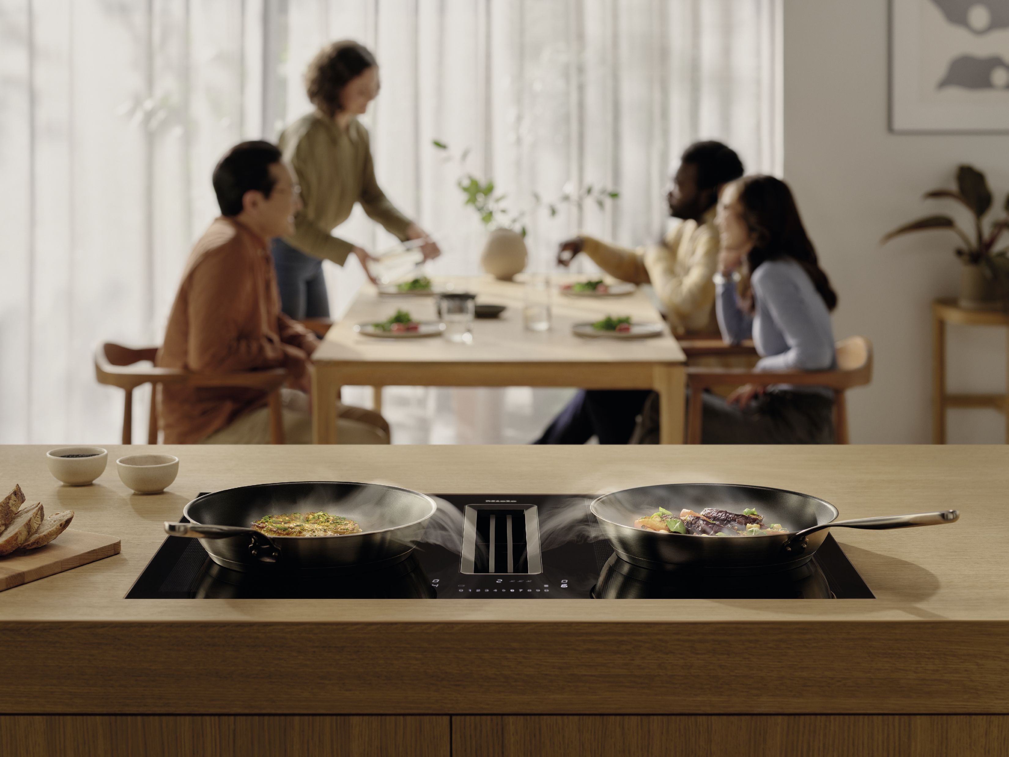 Miele Kochfelder mit integriertem Dunstabzug beseitigen effektiv Gerüche und Fett und ergänzen durch ihr elegantes Premium-Design jede Küche. Der Dunstabzug arbeitet sehr effizient und sehr leise - so können Sie sich auf das Wesentliche konzentrieren.